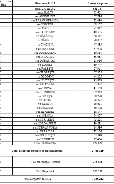 Potrivit autorităților, 2.759.169 de cetățeni cu drept de vot sunt atribuiți unităților administrativ-teritoriale de nivelul II.