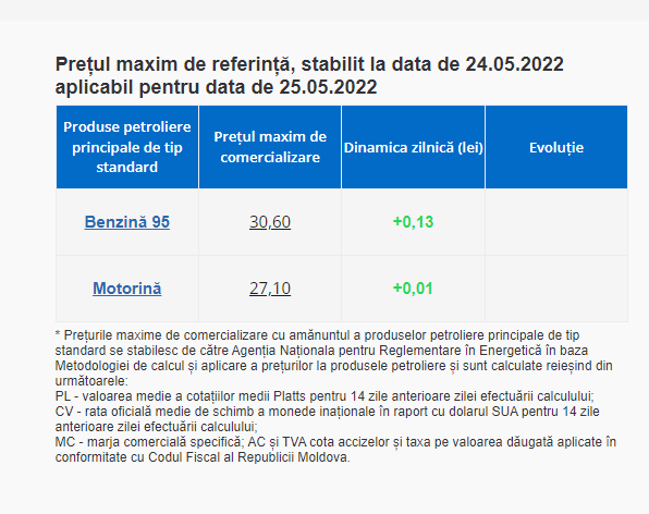 Agenția Națională pentru Reglementare în Energetică anunță pentru ziua de miercuri, 25 mai, următoarele prețuri: