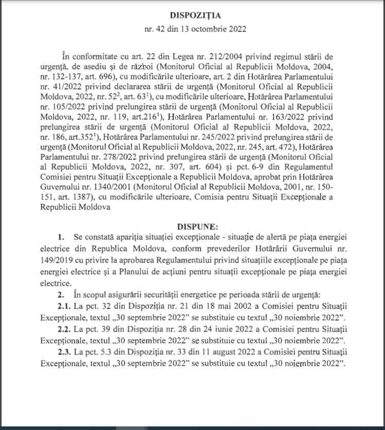 O decizie în acest sens a fost aprobată de Comisia pentru Situații Excepționale.