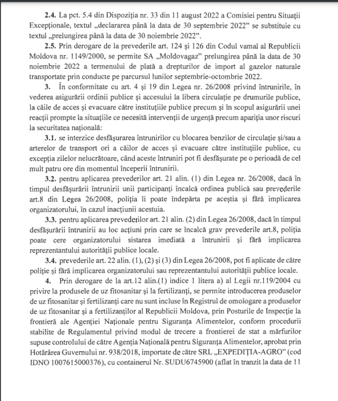 „ Dacă în timpul desfăşurării întrunirii, unii participanţi încalcă ordinea publică, incită la discriminare sau violență, îndeamnă la război sau agresiune ori organizează tulburări în masă, poliția îi poate îndepărta pe aceştia și fără implicarea organizatorului, în cazul inacțiunii acestuia. În același timp, dacă acțiunile enumerate se încalcă grav, poliția poate cere organizatorului sistarea imediată a întrunirii și fără implicarea reprezentantului autorității publice locale”, potrivit dispoziției CSE.
