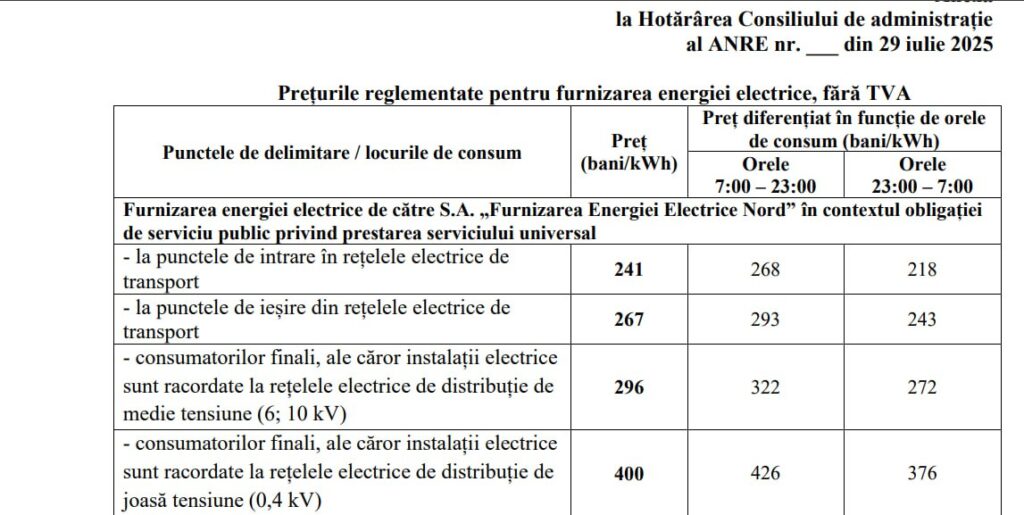 Precizăm că în prezent, consumatorii din centrul și sudul țării plătesc 4 lei și 10 bani/kWh, iar cei din nordul țării - 4 lei și 68 de bani.