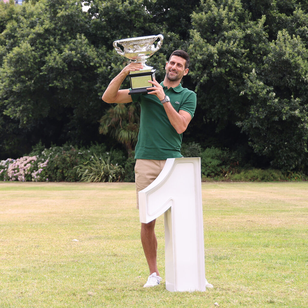 Cu triumful de la Melbourne, Djokovic și-a trecut în palmares titlul 93 din carieră, depășindu-l astfel pe Nadal (92). Miza e însă alta: Nole va căuta să intre in galeria jucătorilor cu minimum 100 de turnee câștigate în carieră. Acolo se mai află doar două nume: Jimmy Connors (109) și Roger Federer (103). Sârbul ocupă locul 4 în această ierarhie și-l va depăși curând pe Ivan Lendl, care are 94 de titluri. Ilie Năstase prinde Top 10: e pe locul 9, cu 64 de trofee.