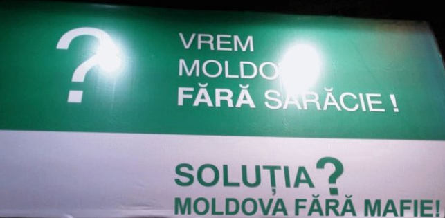 Pe site-ul de socializare Facebook a apărut poza unui panou de culoare verde, care conține mesajul “Vrem Moldova fără sărăcie!”. Iar în partea de jos a panoului este menționat: “Soluția? Moldova fără Mafie!”.Postări asemănatoare