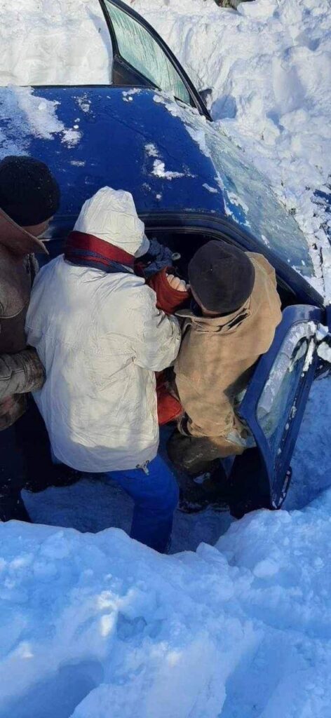 Angajații IGSU au fost alertați la ora 8:03, prin intermediul Serviciului 112, să intervină în apropiere de localitatea Coșcalia, pentru a debloca un autovehicul dintre nămeți.