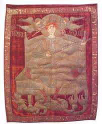 Exponatul este o broderie bizantină realizată în secolul al 15-lea, care îl înfăţişează pe Sfântul Mare Mucenic Gheorghe, considerat un simbol al victoriei în războaie. De jur împrejur, broderia are o inscripţie slavonă cu rugăciunea domnitorului Ştefan cel Mare către Sfânt. Potrivit istoricilor, broderia a fost realizată din mătase roşie, decolorată de trecerea anilor şi deteriorată în vechime, atunci când, din neştiinţă, călugării de la Mănăstirea Zographou de la Muntele Athos au remontat-o pe o bucată de catifea de calitate inferioară. România a recuperat steagul în 1917.