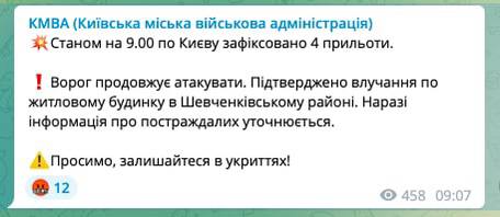 Primarul Kievului Vitalii Kliciko a anunțat pe Telegram că mai multe explozii au avut loc în centrul orașului – regiunea Șevcenko. Potrivit edilului, o clădire a fost afectată. La fel au fost avariate mai multe case.