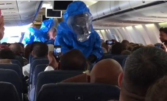 La aterizare, avionul a fost luat cu asalt de o echipă de medici îmbrăcaţi în costume de protecţie care au izolat pasagerii. Aceştia au rămas blocaţi două ore în avion până au aflat că totul este o glumă proastă. Americanul nu era nici bolnav de Ebola, nici nu vizitase vreo ţară africană, afectată de epidemie.