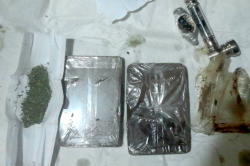 În urma percheziţiei la domiciliul suspectuluia acestuia, poliţia a depistat și ridicat două dispozitive destinate consumului drogurilor, 10 gr de marijuana și 300 gr de hașiș.